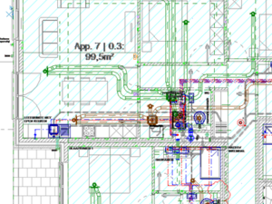 De appartementsblokken tellen maximaal drie bovengrondse verdiepingen en omvatten gemiddeld 19 wooneenheden per blok. Het project omvat een volledige technische uitwerking, waaronder elektriciteit, ventilatie, verwarming en sanitaire installaties.