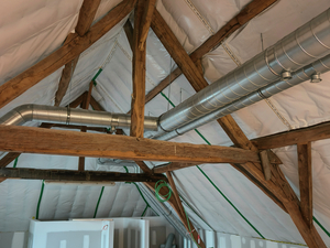 De technische voorzieningen omvatten een lucht/water monoblock warmtepomp, die zowel zorgt voor de opwekking van warmte als koude. In de lokalen wordt de verwarming verzorgd via vloerverwarming, terwijl de koeling zowel via vloerkoeling als extra ventiloconvectoren plaatsvindt. Gezien de ouderdom van het gebouw, is het noodzakelijk om extra koelcapaciteit in te zetten om een aangename temperatuur te behouden.