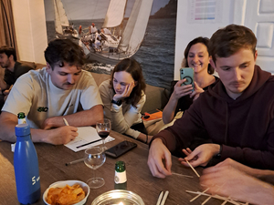 Op zondag hebben we op het strand een reeks teambuilding games gespeeld. Nadien was het de beurt aan een echte raft challenge op zee. Geen betere manier om als team samen te werken dan met een vlot dat ons over de golven moest dragen. De competitie was intens, maar het was vooral lachen, samenwerken en elkaar ondersteunen! Kortom we hebben ons niet verveeld!